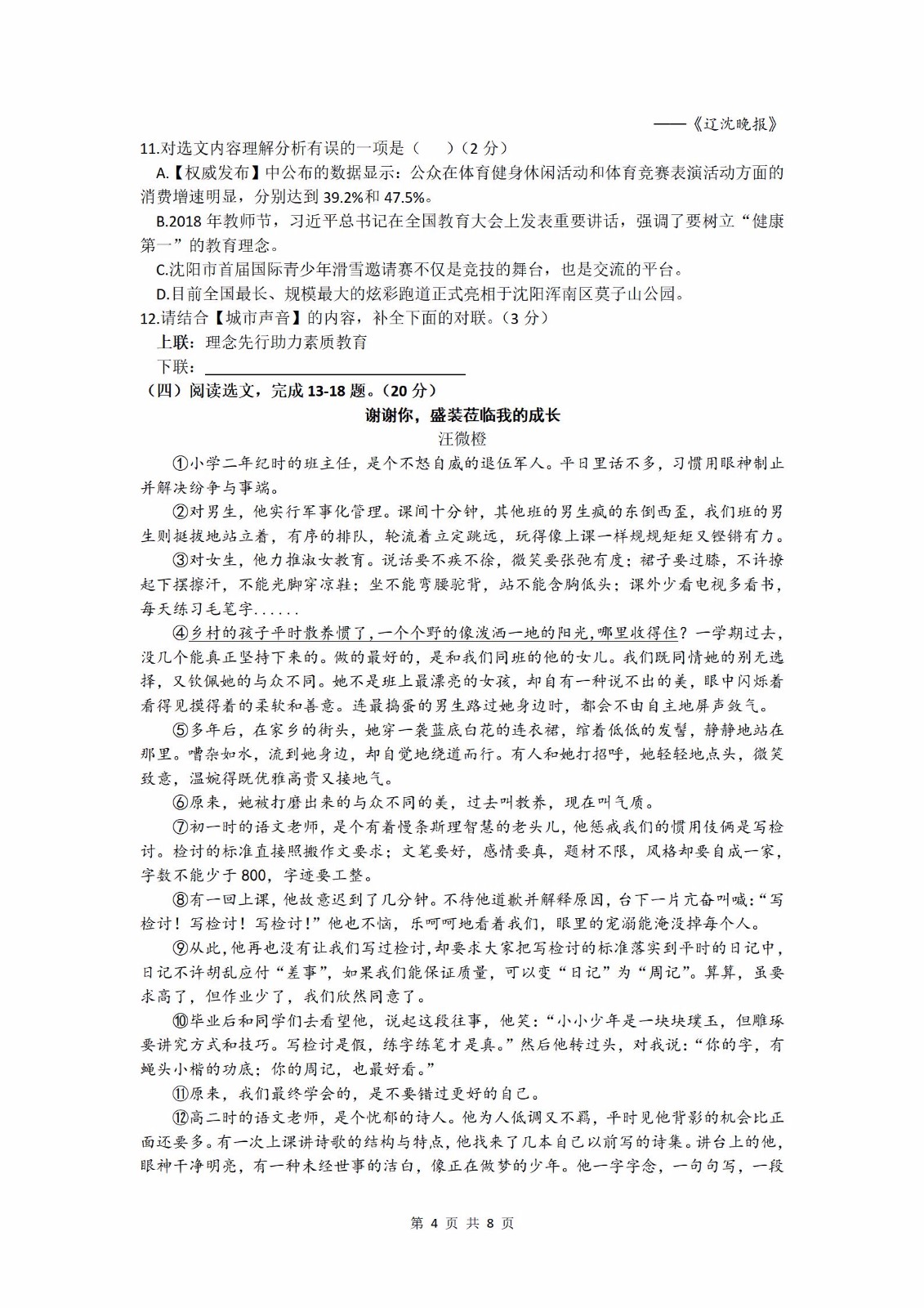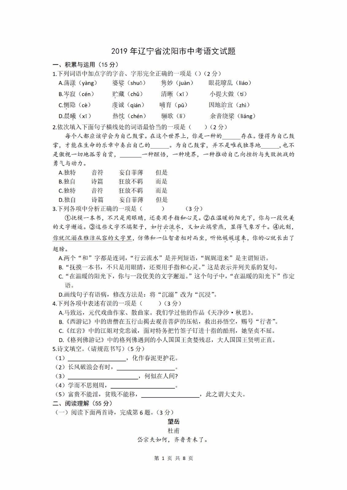 2019年遼寧沈陽中考語文考試已結(jié)束,中考頻道搜集整理發(fā)布了“2019年遼寧沈陽中考語文試題及答案”,僅供考生們參考學(xué)習(xí),小編預(yù)祝大家取得優(yōu)異的成績!