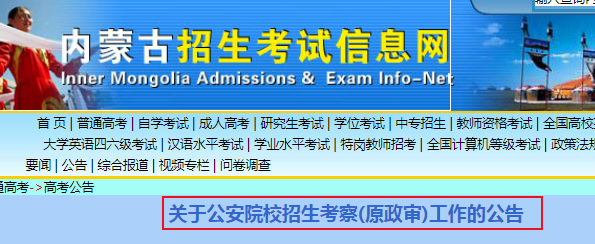 從內(nèi)蒙古招生考試信獲悉息網(wǎng),參加公安院校招生考察的學生6月27日-7月3日在內(nèi)蒙古警察職業(yè)學院參加面試,現(xiàn)將有關(guān)事宜通知如下: