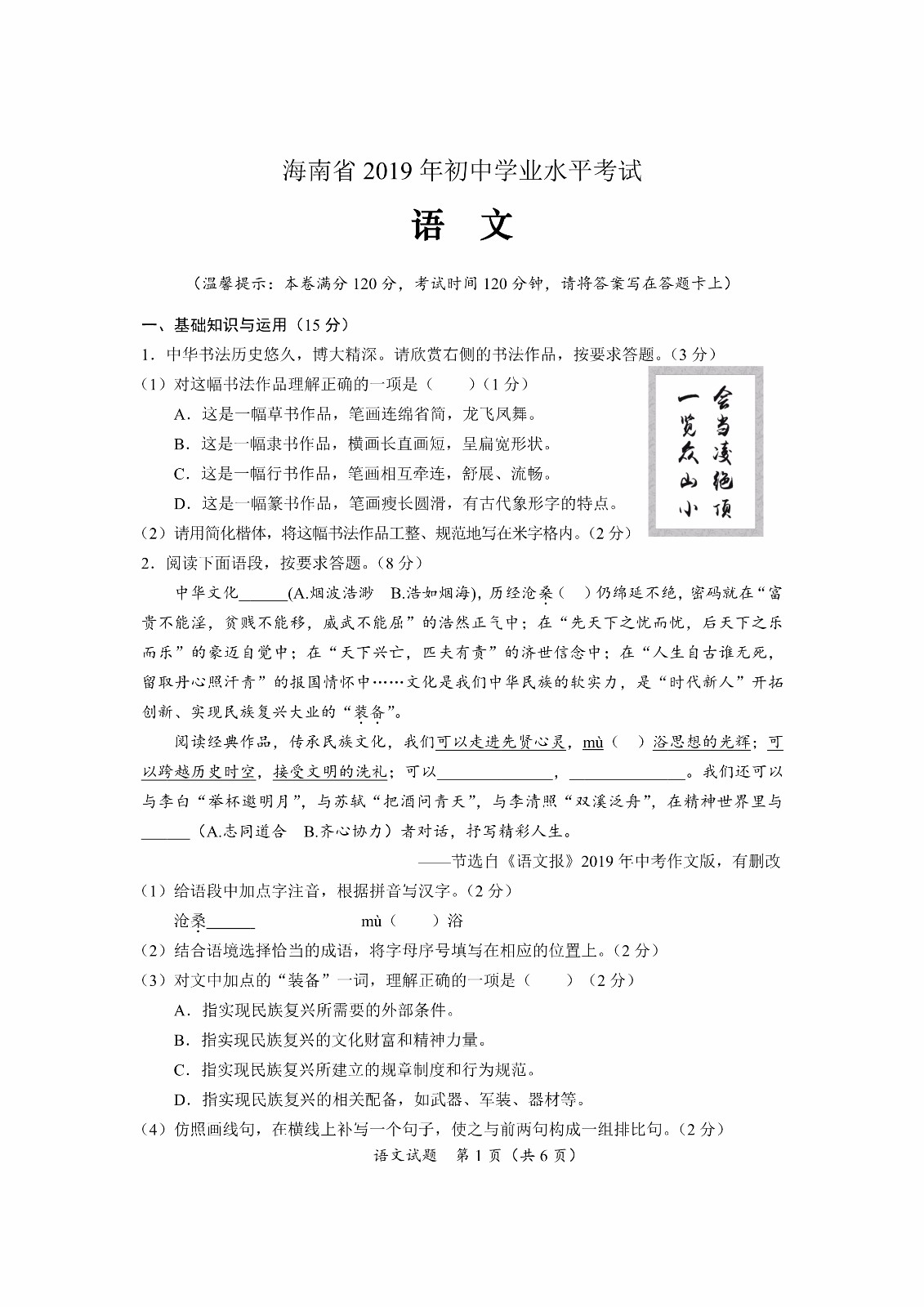 2019年海南三亞中考語文科目考試現(xiàn)已結(jié)束,為方便考生及時(shí)估分,中考頻道在本次考試結(jié)束后發(fā)布了“2019年海南三亞中考語文試卷”僅供考生參考學(xué)習(xí),在此預(yù)祝廣大考生取得優(yōu)異的成績,請(qǐng)繼續(xù)關(guān)注我們!