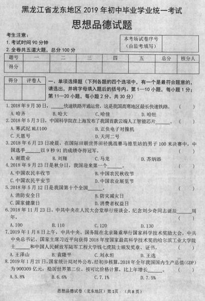 2019年黑龍江鶴崗中考政治考試已結(jié)束,中考頻道搜集整理發(fā)布了“2019年黑龍江鶴崗中考政治試卷”,供考生們參考學(xué)習(xí),小編預(yù)祝大家取得優(yōu)異的成績(jī)!
