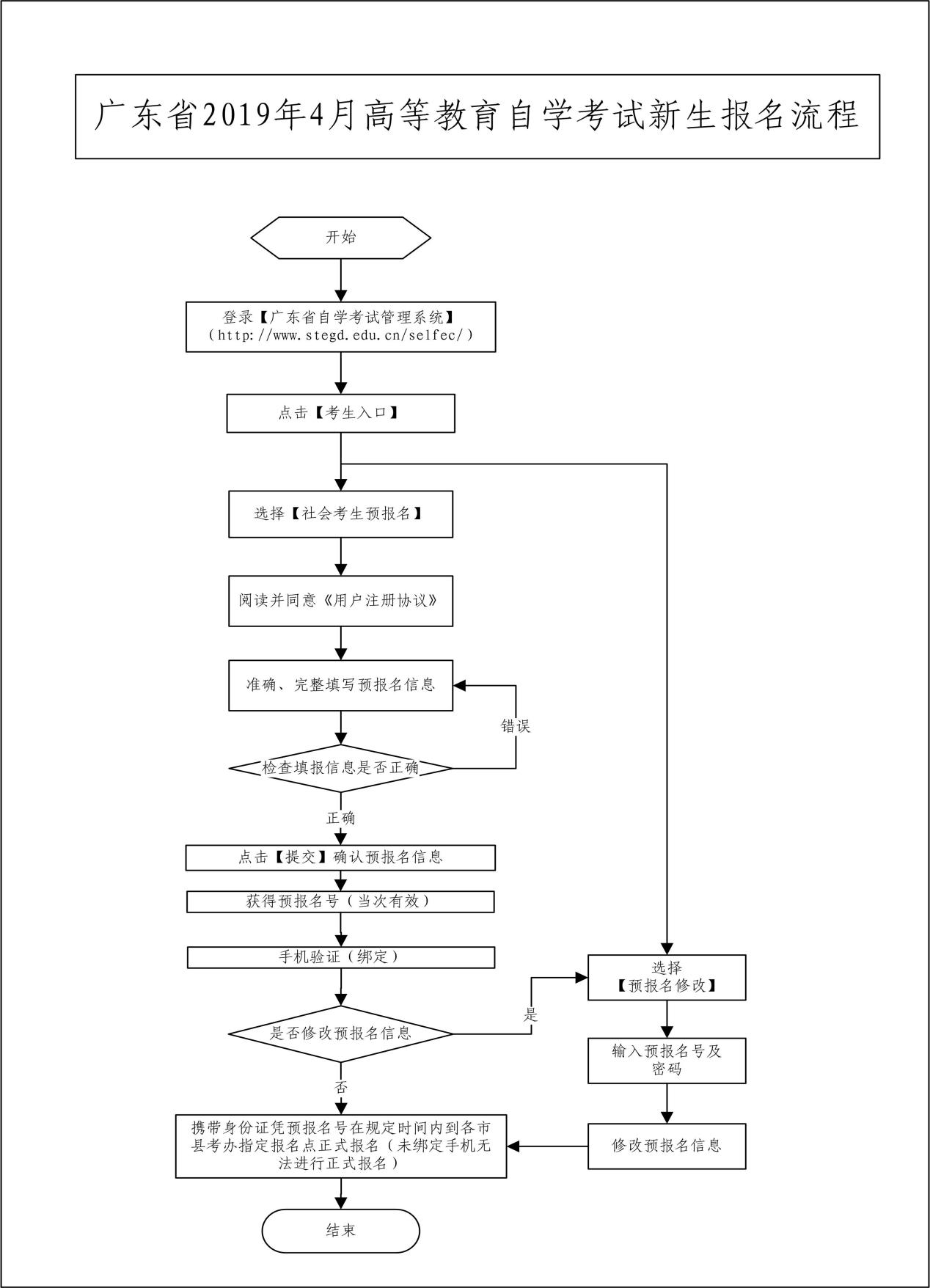 1.預(yù)報(bào)名。新生自行登錄廣東省自學(xué)考試管理系統(tǒng)(網(wǎng)址:www.stegd.edu.cn/selfec/,下同)進(jìn)行預(yù)報(bào)名。根據(jù)《關(guān)于廣東省高等教育自學(xué)考試專(zhuān)業(yè)調(diào)整有關(guān)事項(xiàng)的通知》(粵考委〔2018〕1號(hào))規(guī)定,此次新生報(bào)名只能選擇調(diào)整后的專(zhuān)業(yè)名稱。預(yù)報(bào)名時(shí)考生須錄入個(gè)人信息并設(shè)置個(gè)人密碼,預(yù)報(bào)名成功后將得到的預(yù)報(bào)名號(hào),預(yù)報(bào)名號(hào)僅當(dāng)次有效??忌A(yù)報(bào)名成功后還須完成本人手機(jī)綁定方能進(jìn)行正式報(bào)名。