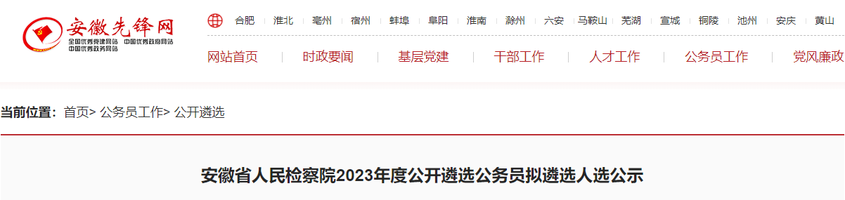 安徽省人民檢察院2023年度公開(kāi)遴選公務(wù)員擬遴選人選名單