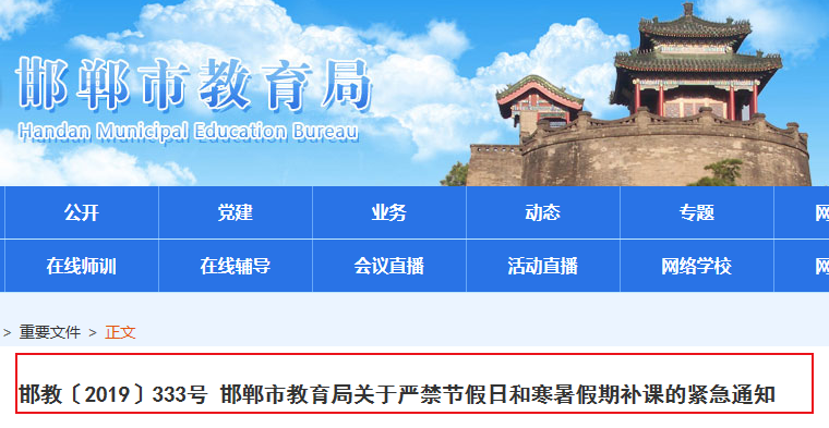 從邯鄲市教育局獲悉,暑假將至,為切實(shí)落實(shí)關(guān)于規(guī)范辦學(xué)行為和“減負(fù)”的有關(guān)規(guī)定,堅(jiān)決遏制違規(guī)補(bǔ)課行為,現(xiàn)就嚴(yán)禁節(jié)假日和寒暑假期補(bǔ)課有關(guān)事宜通知如下: