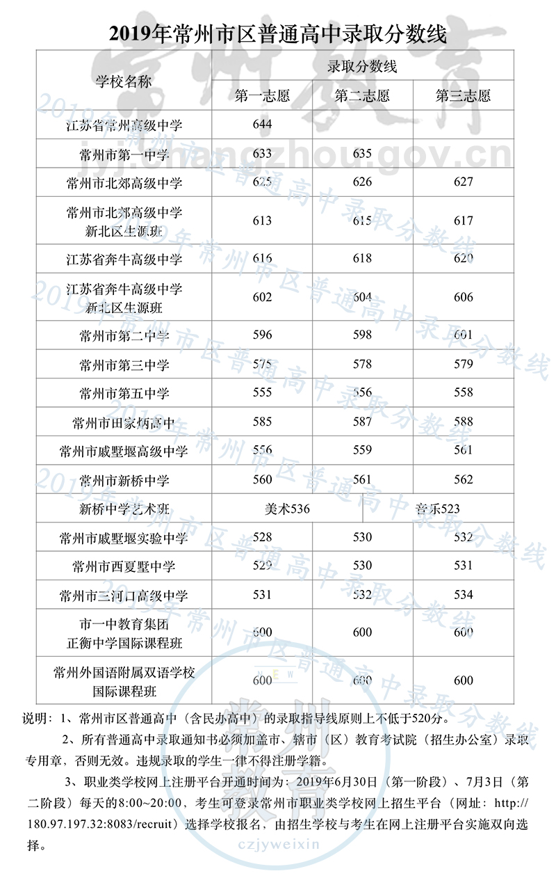 中考頻道從常州市教育局了解到,2019年江蘇常州市區(qū)中考錄取分?jǐn)?shù)線已公布,具體江蘇常州市區(qū)中考分?jǐn)?shù)線如下: