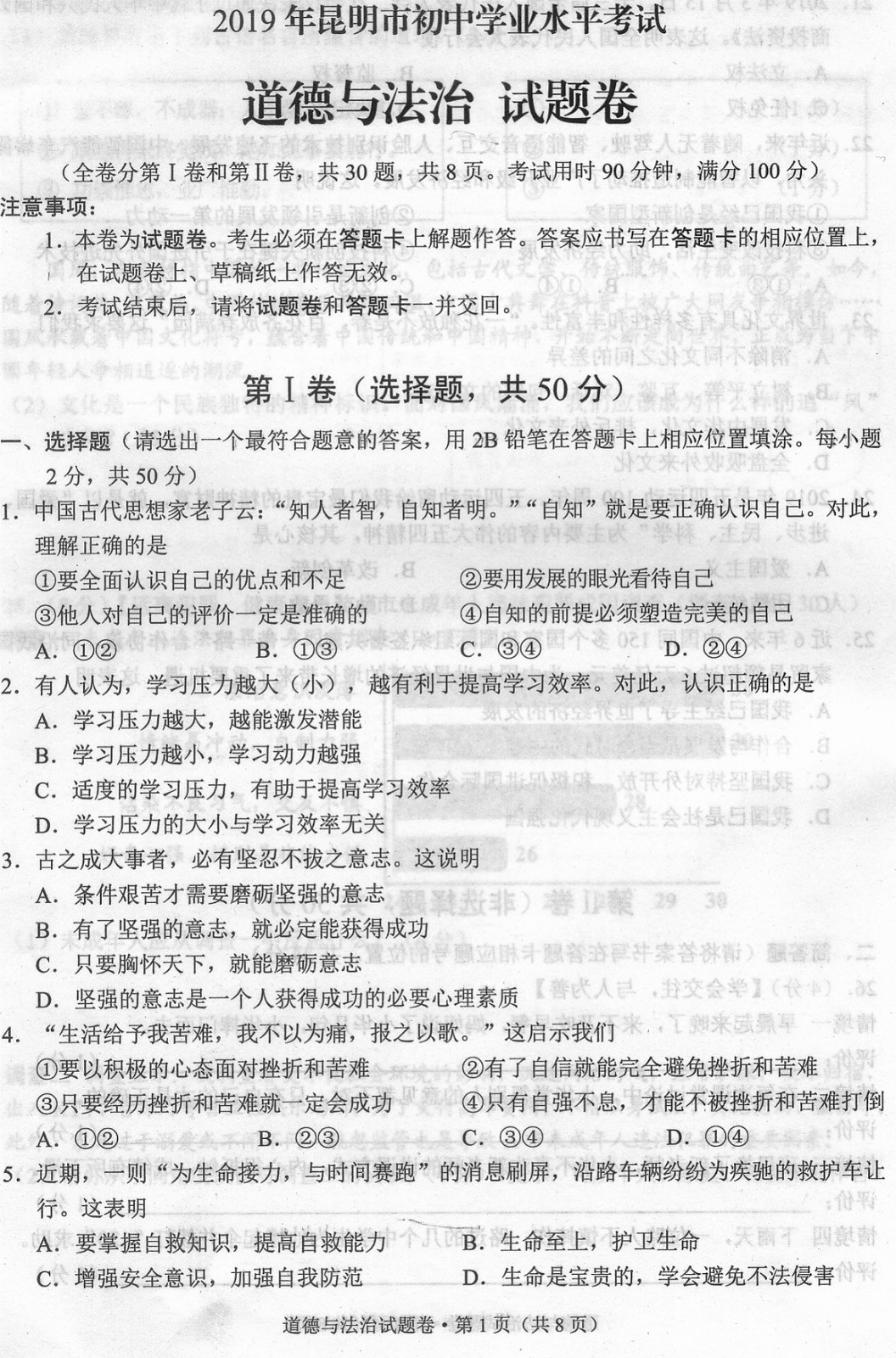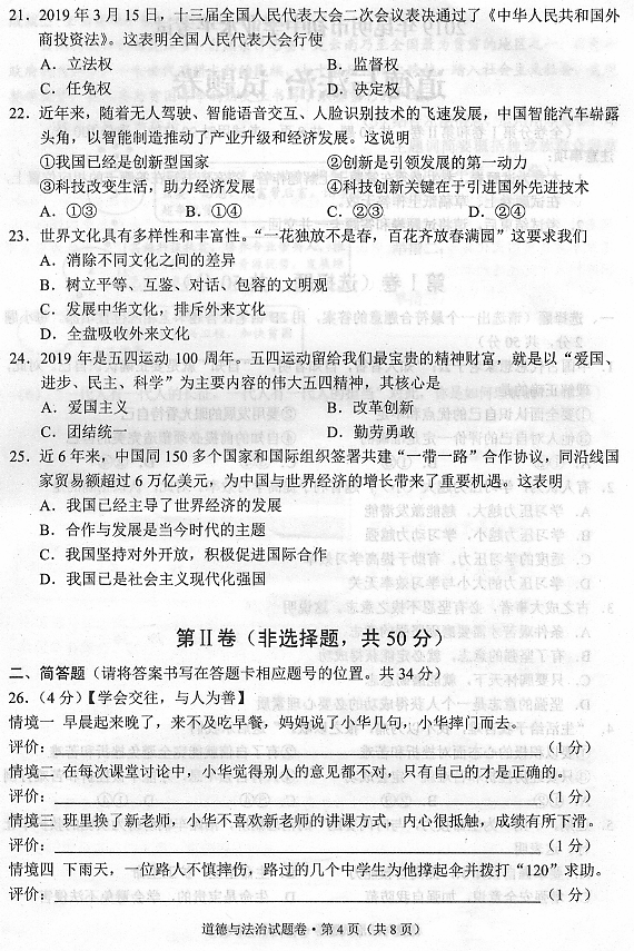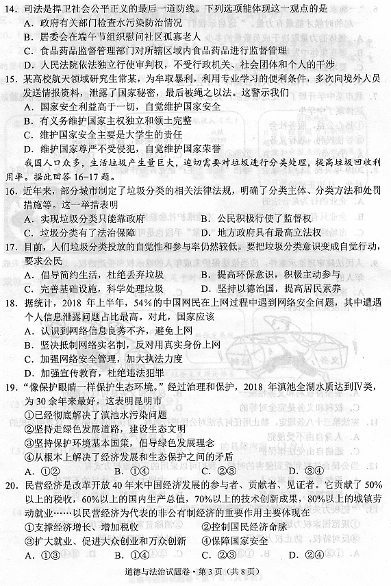 2019年云南昆明中考政治考試已結(jié)束,中考頻道搜集整理發(fā)布了“2019年云南昆明中考政治試卷”,供考生們參考學(xué)習(xí),小編預(yù)祝大家取得優(yōu)異的成績(jī)!