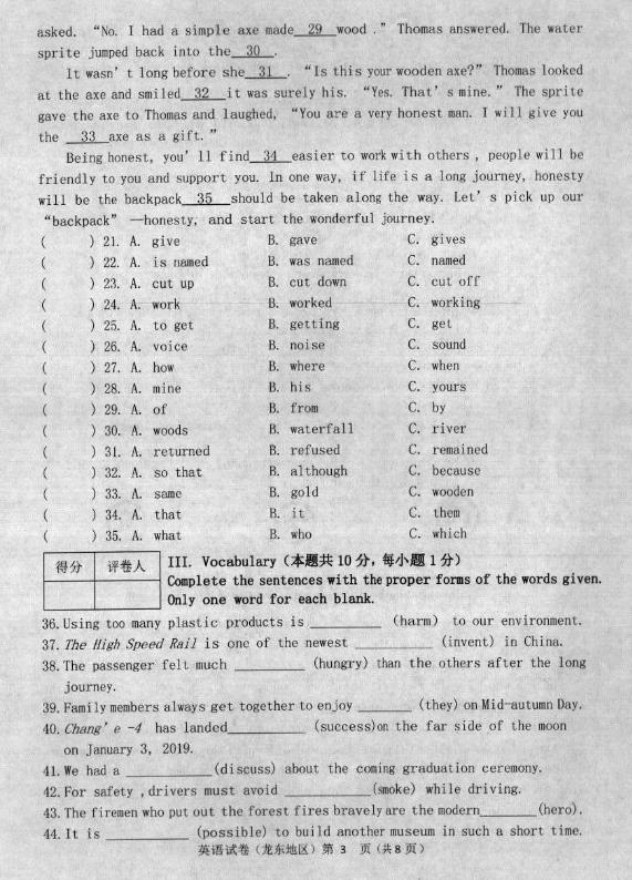 2019年黑龍江鶴崗中考英語考試已結(jié)束,中考頻道搜集整理發(fā)布了“2019年黑龍江鶴崗中考英語試卷”,僅供考生們參考學(xué)習(xí),小編預(yù)祝大家取得優(yōu)異的成績!