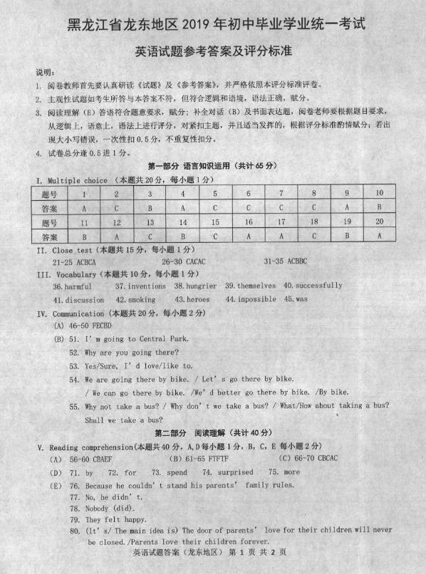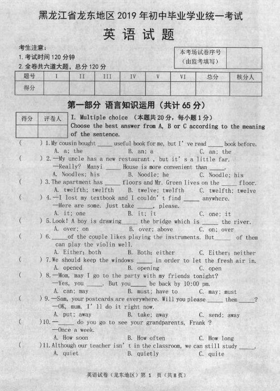2019年黑龍江雙鴨山中考英語考試已結(jié)束,中考頻道搜集整理發(fā)布了“2019年黑龍江雙鴨山中考英語試題及答案”,僅供考生們參考學(xué)習(xí),小編預(yù)祝大家取得優(yōu)異的成績!