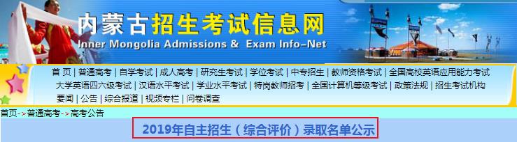 從內(nèi)蒙古招生考試信息網(wǎng)獲悉,2019年內(nèi)蒙古自主招生(綜合評(píng)價(jià))錄取名單已公示,具體詳情如下: