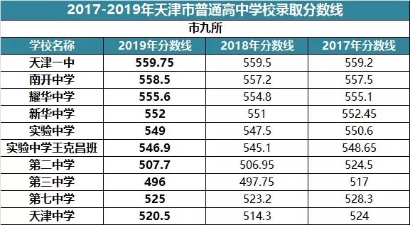 中考頻道從天津市教育委員會(huì)了解到,2019年天津市九所普通高中中考錄取分?jǐn)?shù)線已公布,具體天津市九所普通高中中考分?jǐn)?shù)線如下: