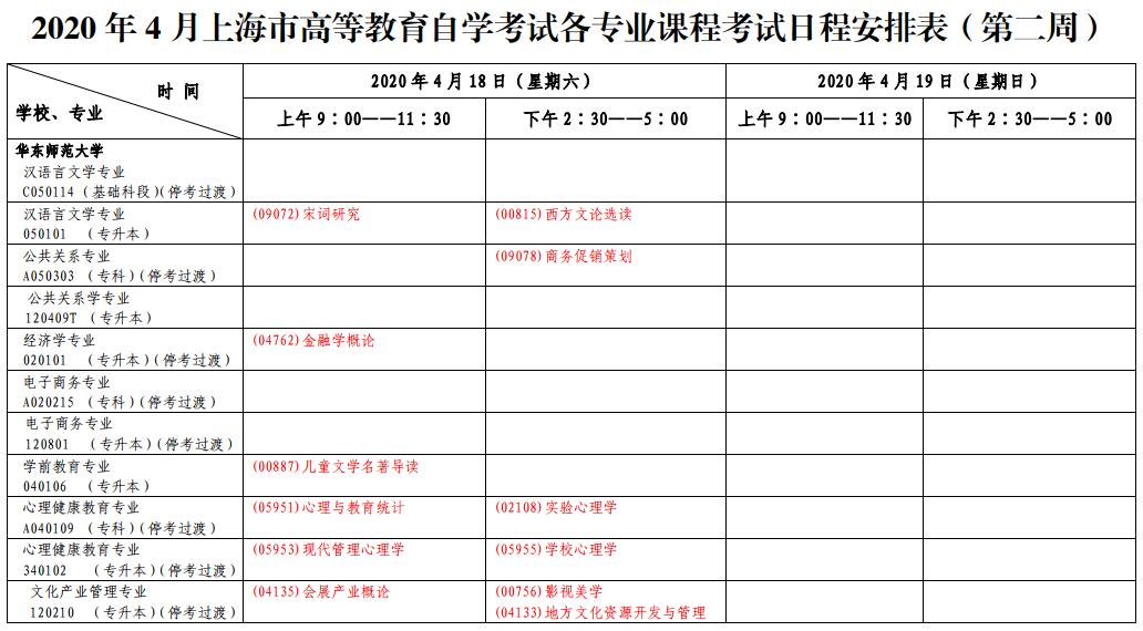 2.點(diǎn)擊查看完整版:2020年4月上海市高等教育自學(xué)考試各專業(yè)課程考試日程安排表(第二周)