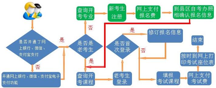 (4)新考生網(wǎng)上自行選擇填報課程,通過微信、支付寶掃碼支付或網(wǎng)上銀行在線支付,完成報名過程。