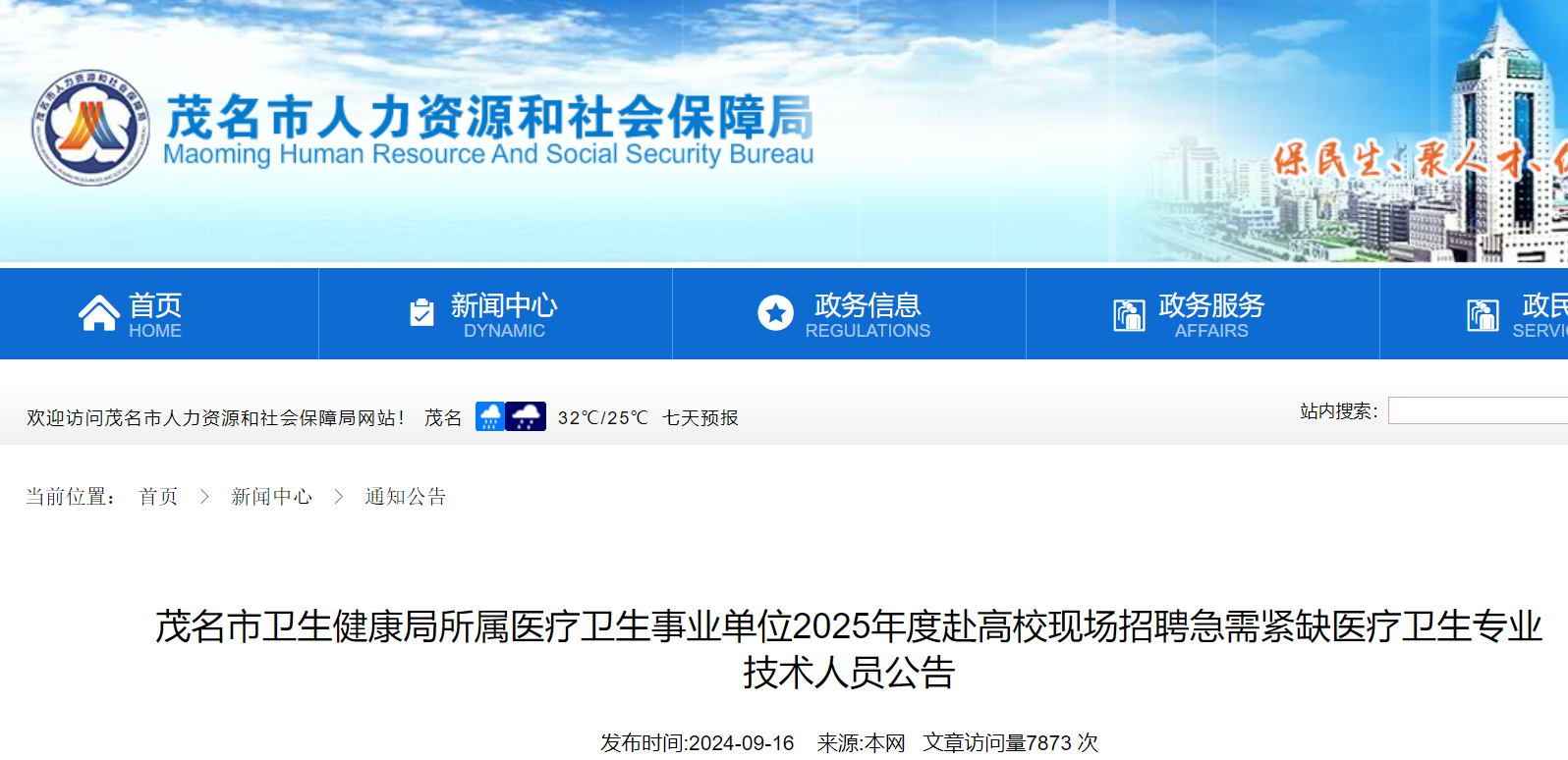 2025廣東茂名市衛(wèi)生健康局所屬醫(yī)療衛(wèi)生事業(yè)單位赴高校招聘醫(yī)療衛(wèi)生專業(yè)技術(shù)人員公告已發(fā)布,現(xiàn)將招聘公告原文發(fā)布如下: