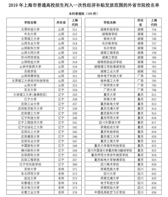 ?。ㄒ唬┓苍诒究破胀ㄅ?、高職(專科)普通批次中填報(bào)廣西、甘肅、陜西、重慶、四川、貴州、云南、內(nèi)蒙古、黑龍江、吉林、新疆、遼寧(除大連市)等省、自治區(qū)、直轄市高校以及湖南、湖北、山西等3省少數(shù)生源長(zhǎng)期不足的普通高校(具體高校名單由上海市教育考試院公布),并被上述高校錄取的具有上海市常住戶口的本市生源考生,可獲一次性補(bǔ)貼1000元;征求志愿填報(bào)而被錄取的可獲一次性補(bǔ)貼500元。