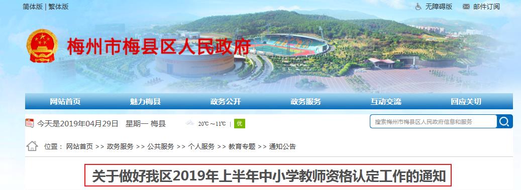 根據(jù)梅州市教育局《關(guān)于做好我市2019年上半年中小學(xué)教師資格認(rèn)定工作的通知》(梅市教人[2019]22號)精神,結(jié)合我區(qū)實(shí)際,為做好我區(qū)2019年上半年中小學(xué)教師(含中等職業(yè)學(xué)校、幼兒園教師)資格認(rèn)定工作,現(xiàn)將有關(guān)事項(xiàng)通知如下: