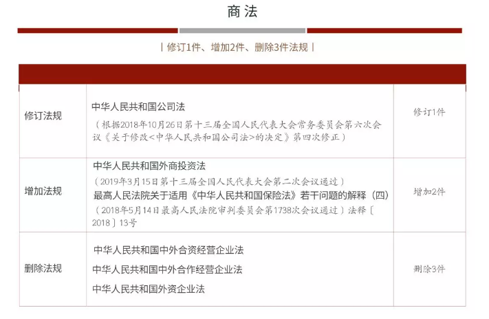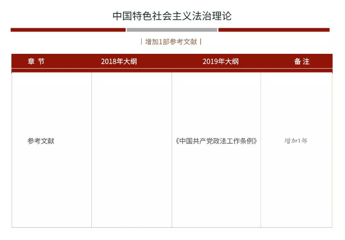 2019年法考大綱總計法律法規(guī)新增13件(含1部參考文獻),修訂17件,刪除26件。修訂內(nèi)容往往與新法以及法學(xué)理論發(fā)展密切相關(guān),例如刑事訴訟法部分新增的考點針對新修訂《中華人民共和國刑事訴訟法》,商法部分調(diào)整的考點針對新通過的《中華人民共和國外商投資法》等等。2019年法考大綱及輔導(dǎo)用書主要修改內(nèi)容對照詳情如下。