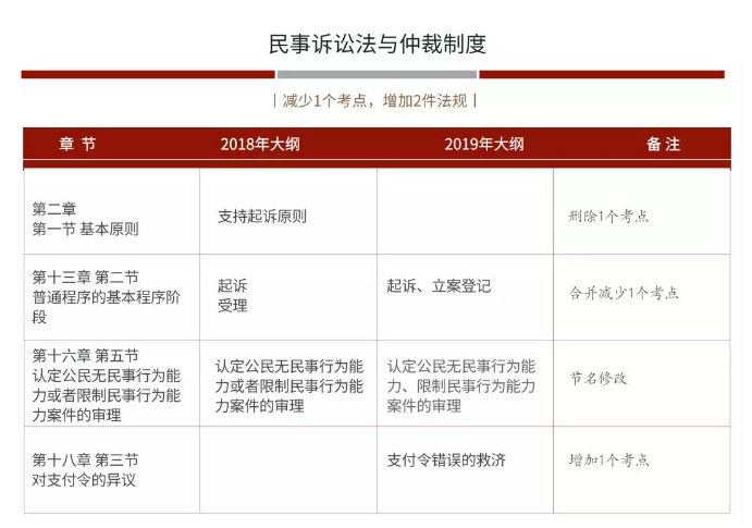 從法律出版社獲悉,重慶2019年法考大綱及輔導(dǎo)用書主要修改內(nèi)容對照已公布,具體詳情如下: