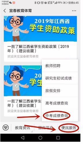 關(guān)注宜春教育體育微 信公 眾 號進(jìn)行查詢。具體步驟如下: