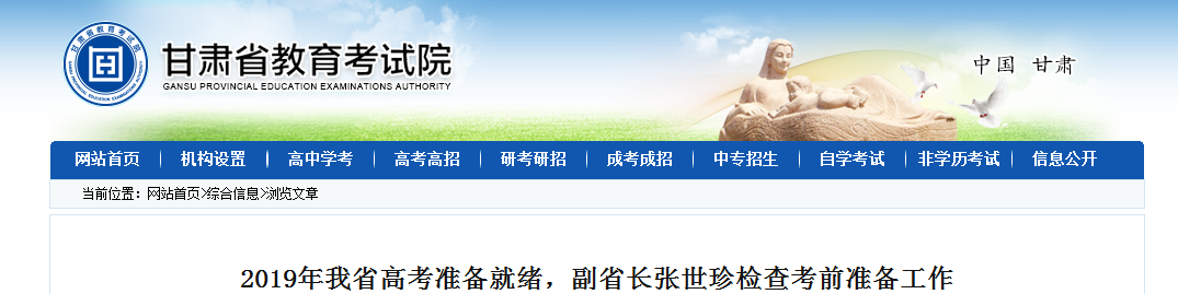從甘肅省教育考試院發(fā)布的《2019年我省高考準(zhǔn)備就緒,副省長(zhǎng)張世珍檢查考前準(zhǔn)備工作》一文中獲悉,2019年甘肅高考報(bào)名人數(shù)為266807人,全省共設(shè)15個(gè)考區(qū),204個(gè)考點(diǎn),原文如下: