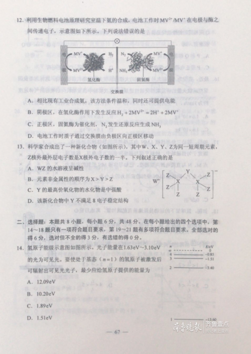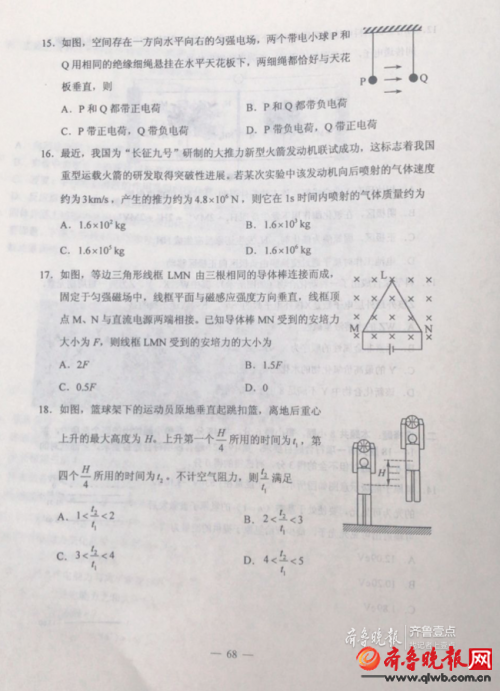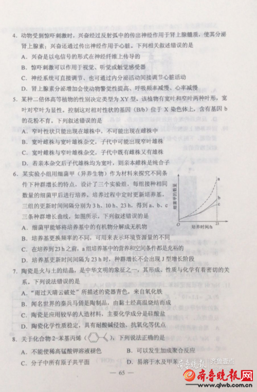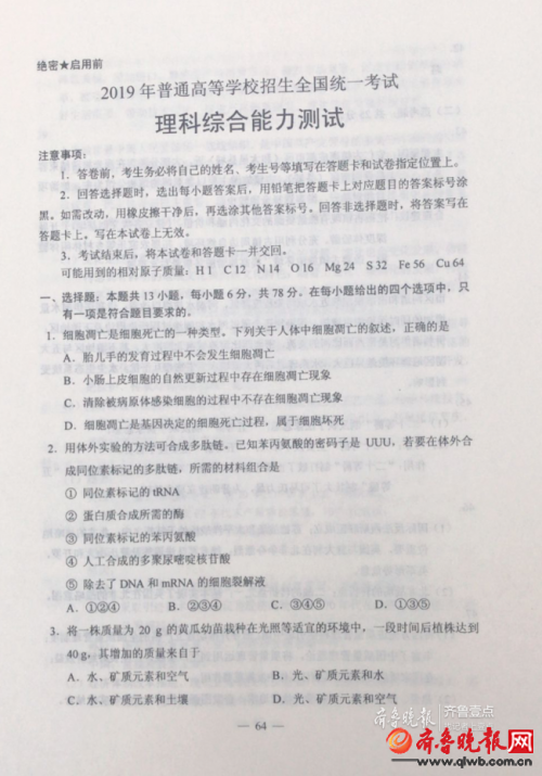 廣東高考頻道從齊魯晚報網(wǎng)了解到,2019年廣東高考理綜真題已公布,廣東高考理綜真題具體如下: