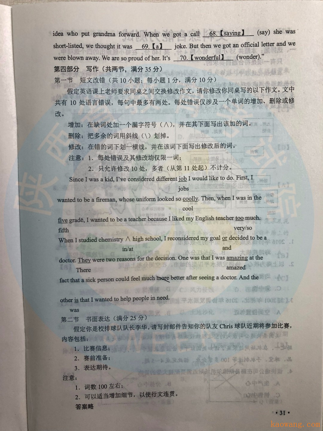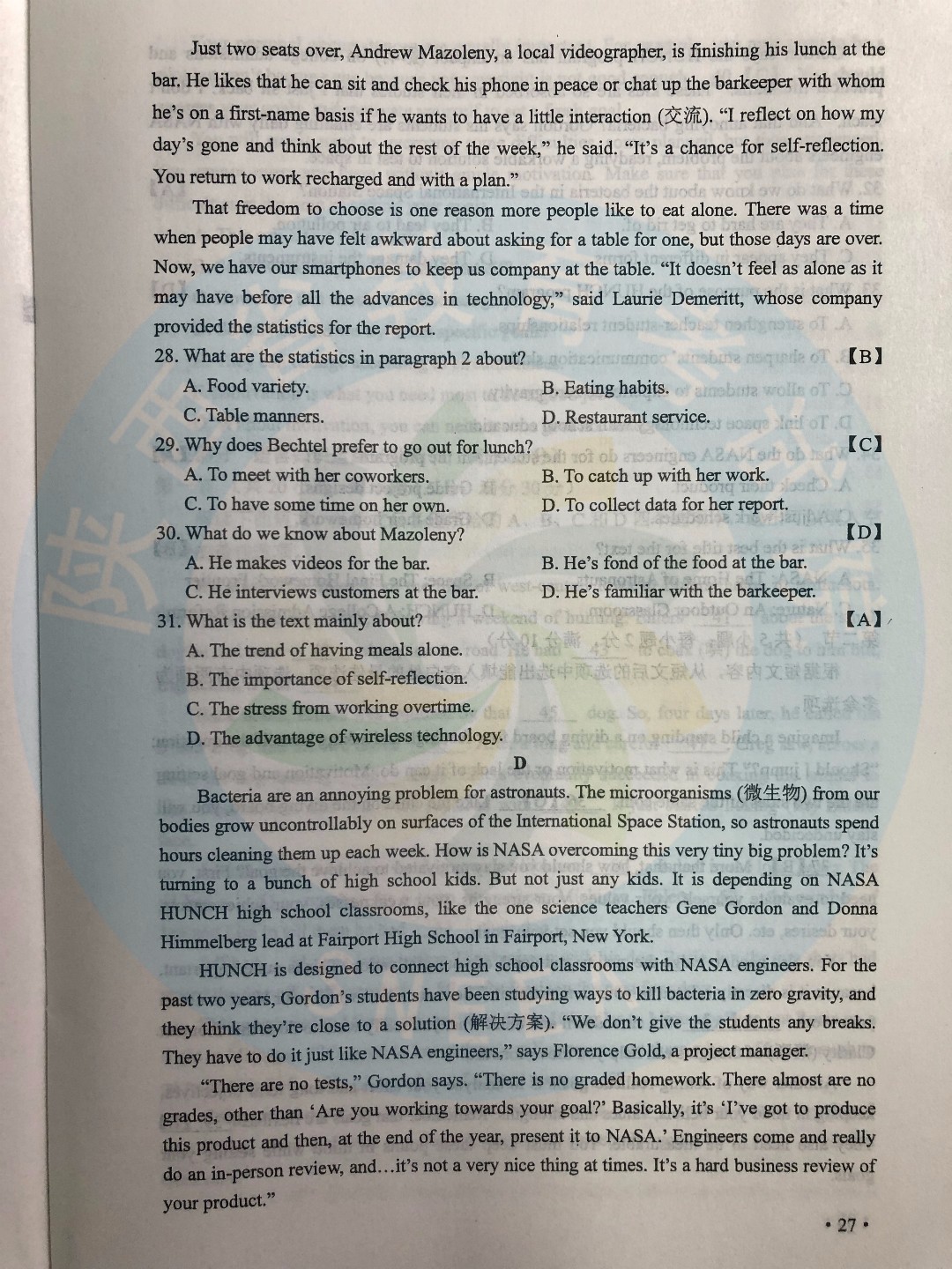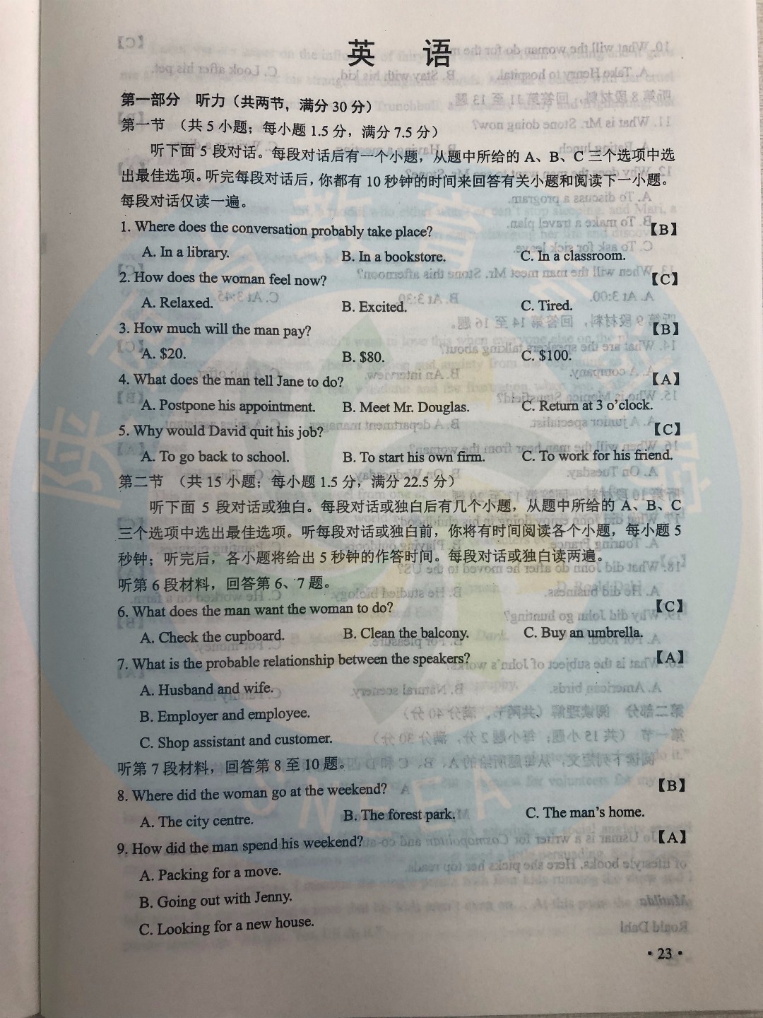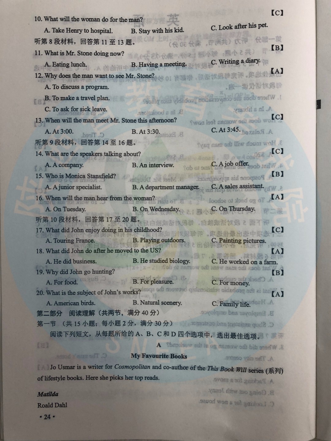 2019年內(nèi)蒙古高考英語(yǔ)真題