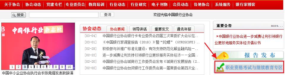 報名路徑:中國銀行業(yè)協(xié)會網(wǎng)站→職業(yè)資格考試與繼續(xù)教育專區(qū)(右上角)→××職業(yè)資格考試報名入口。