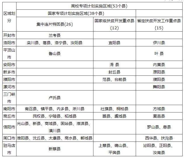 1.河南省實施“國家專項計劃”和“高校專項計劃”縣域名單
