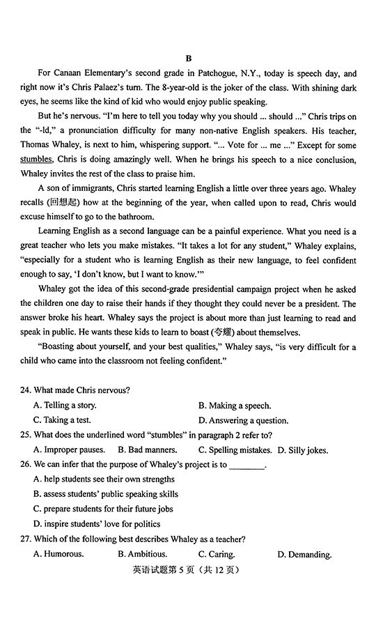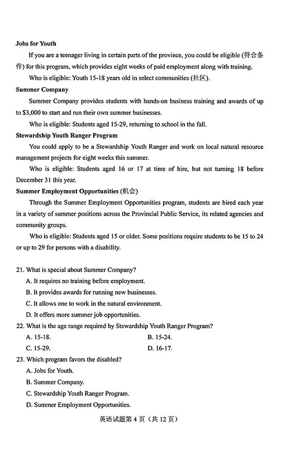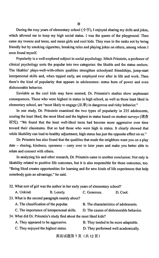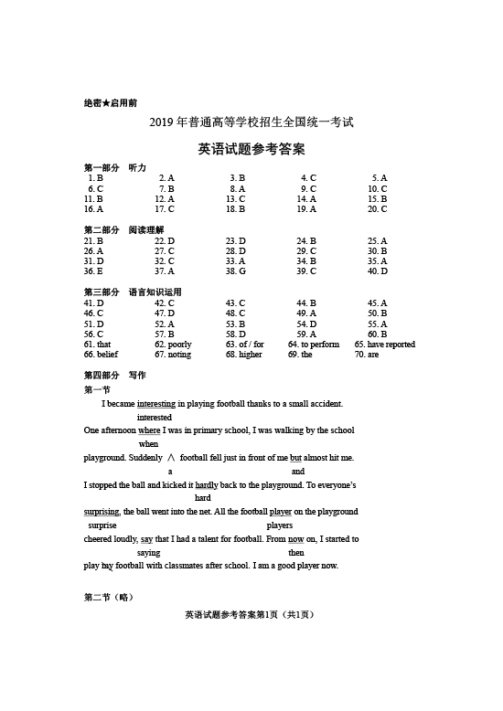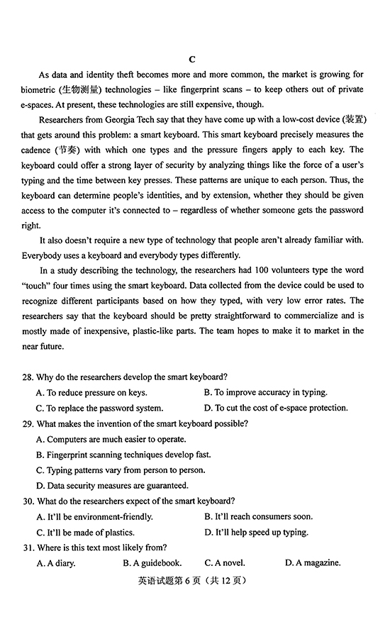 湖南高考頻道從湖 北省教育考試院了解到,2019年湖南高考英語試卷及答案已公布,湖南高考英語試卷及答案具體如下: