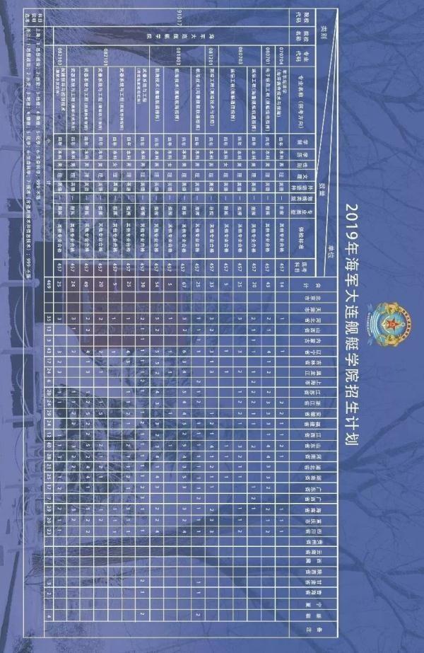 高考頻道從海軍大連艦艇學(xué)院了解到,海軍大連艦艇學(xué)院2019年軍校招生計(jì)劃已公布,具體如下: