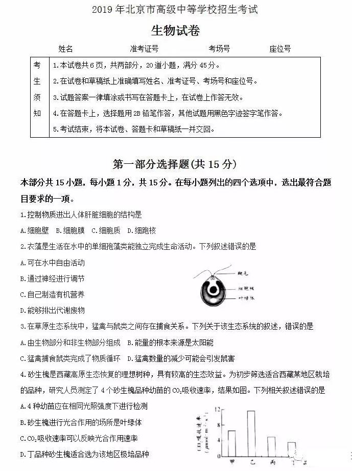 2019年北京門頭溝中考生物考試已結(jié)束,中考頻道搜集整理發(fā)布了“2019年北京門頭溝中考生物試卷”,供考生們參考學習,小編預祝大家取得優(yōu)異的成績!