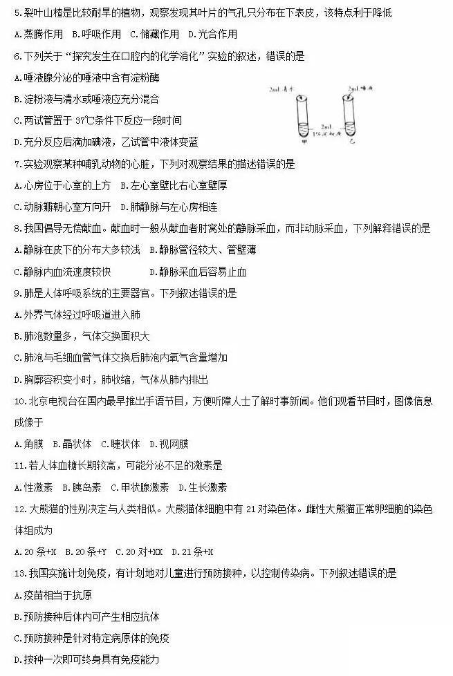 2019年北京東城中考生物考試已結束,中考頻道搜集整理發(fā)布了“2019年北京東城中考生物試卷”,供考生們參考學習,小編預祝大家取得優(yōu)異的成績!