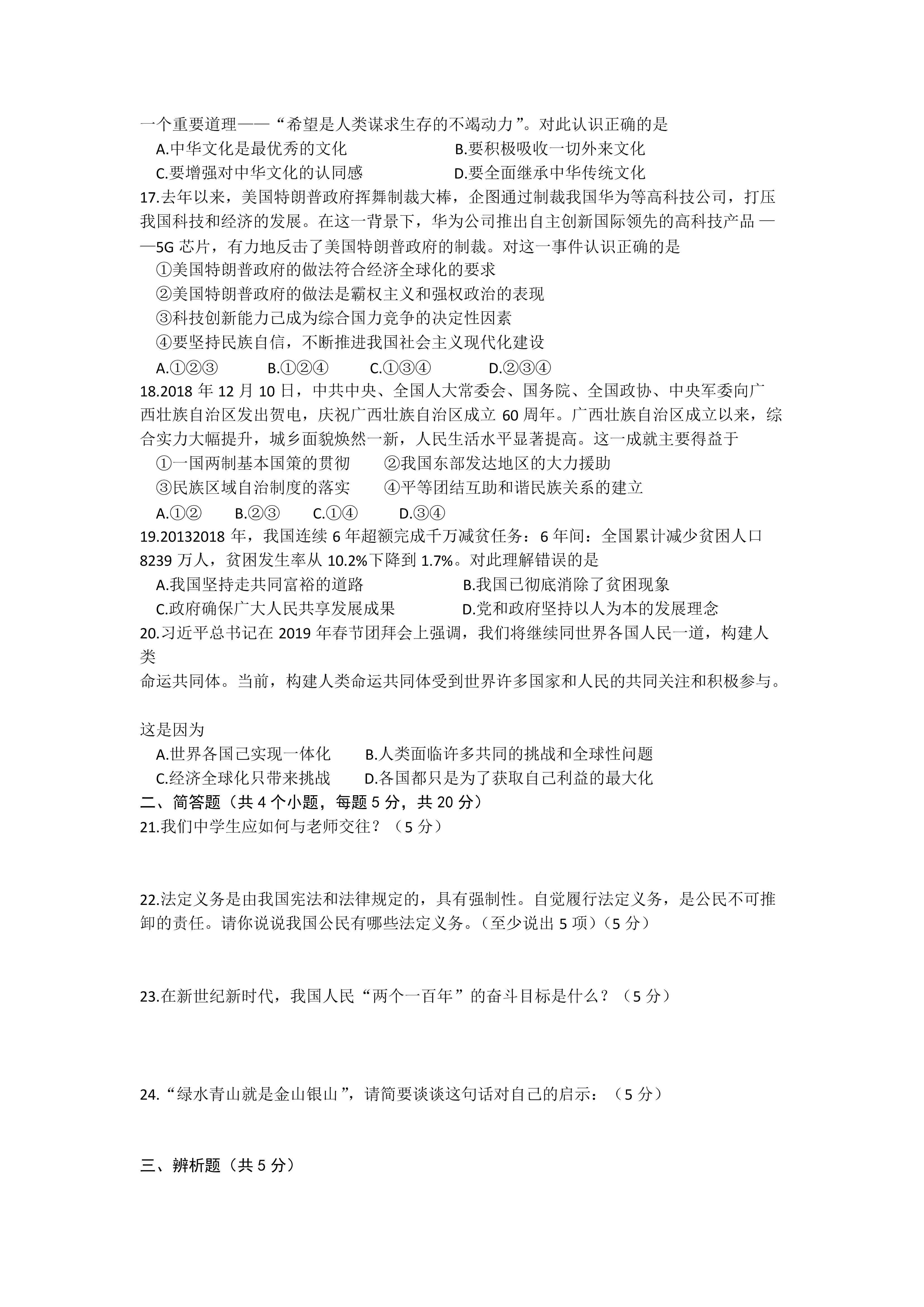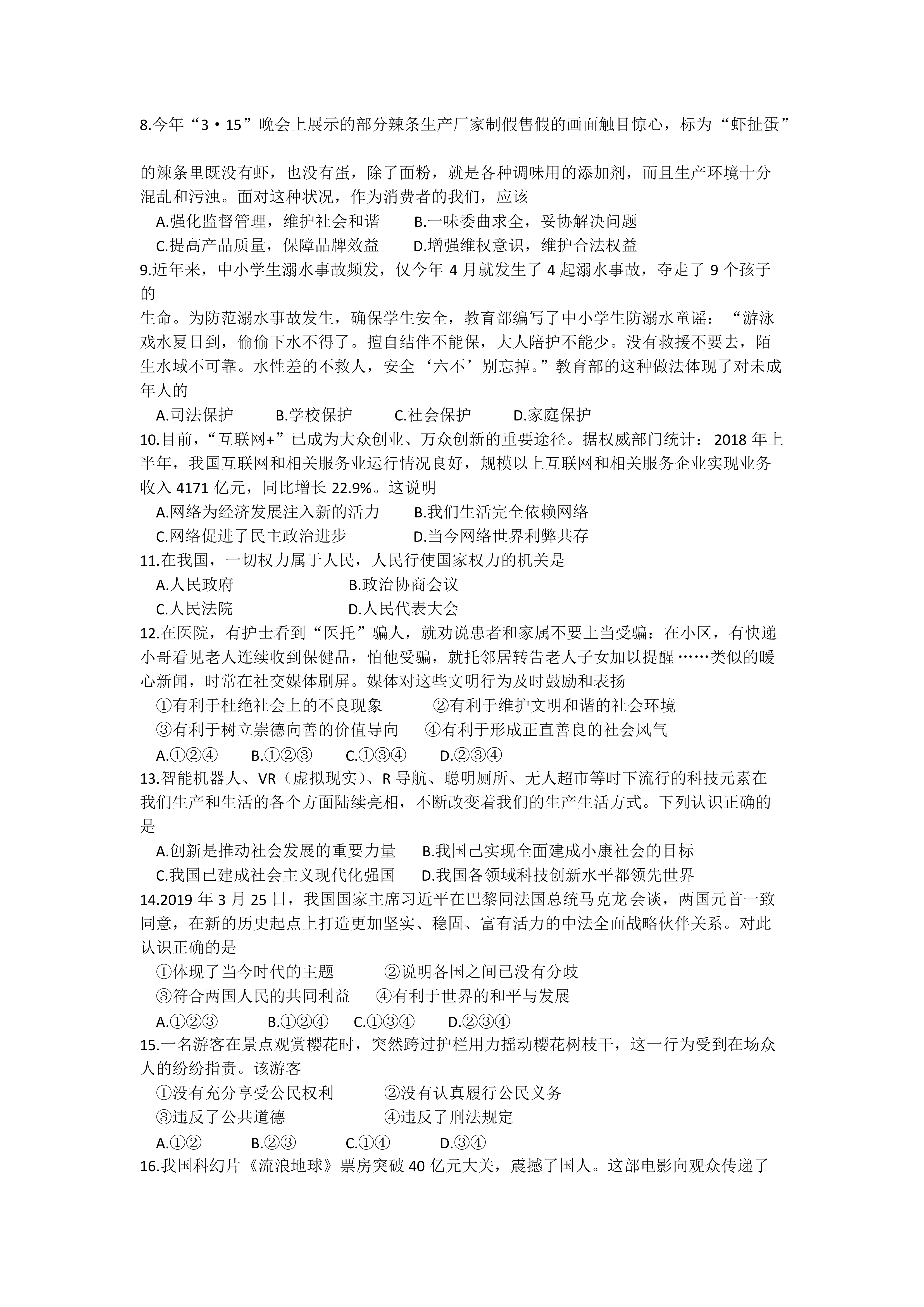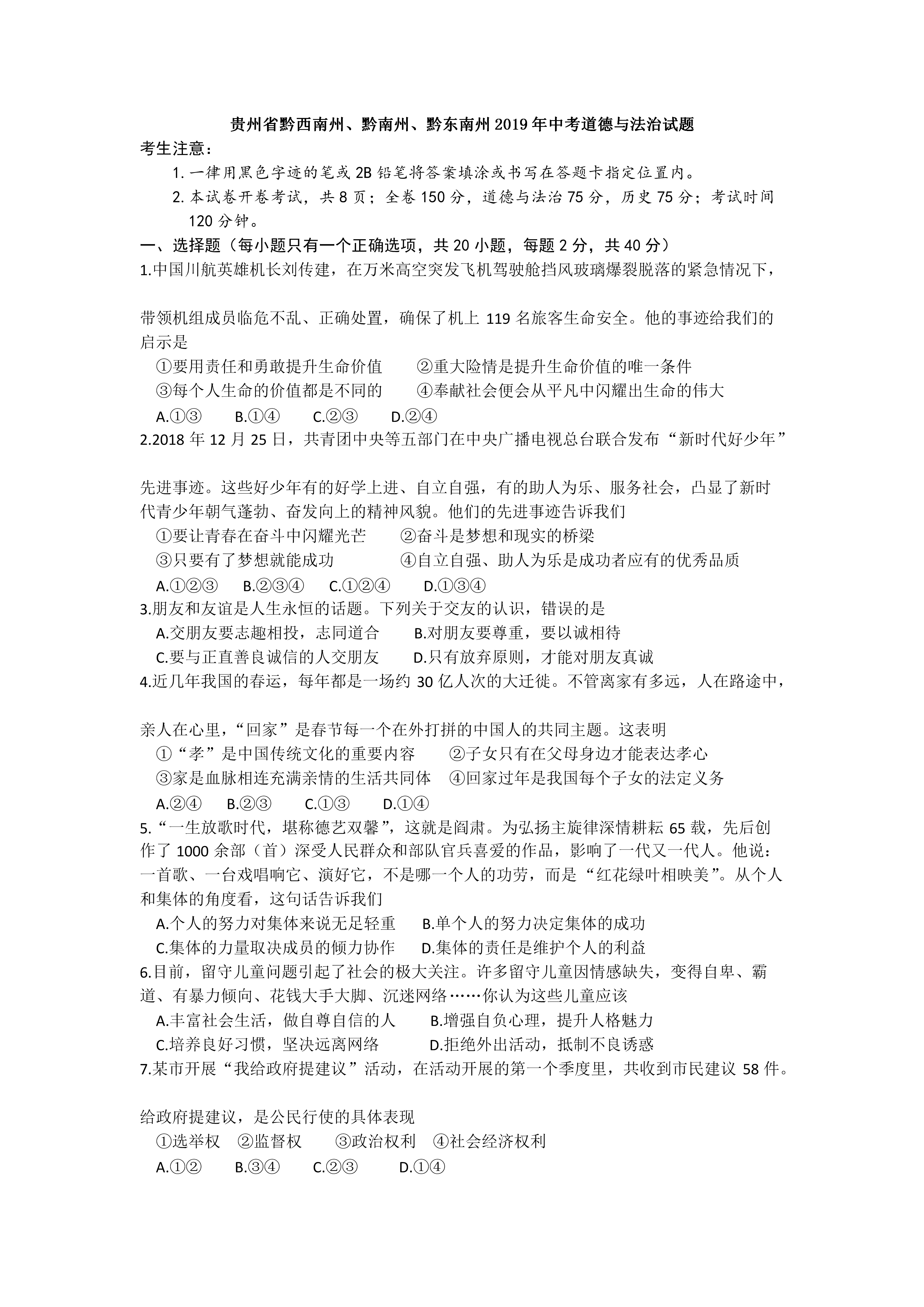 2019年貴州黔西南中考政治考試已結(jié)束,中考頻道搜集整理發(fā)布了“2019年貴州黔西南中考政治試卷”,供考生們參考學(xué)習(xí),小編預(yù)祝大家取得優(yōu)異的成績(jī)!