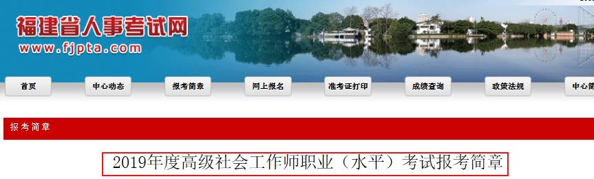 從福建人事考試網(wǎng)獲悉,2019年福建高級社會工作師職業(yè)(水平)考試報(bào)考簡章已公布,報(bào)名時(shí)間為9月6日-9月15日,考試時(shí)間為11月16日,具體詳情如下: