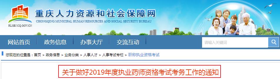 根據(jù)人力資源和社會保障部人事考試中心《關(guān)于做好2019年度執(zhí)業(yè)藥師資格考試考務(wù)工作的通知》(人考中心函〔2019〕44號)和重慶市人力資源和社會保障局《關(guān)于印發(fā)2019年度重慶市人事考試工作計劃的通知》(渝人社辦〔2019〕28號)規(guī)定,為切實做好我市2019年度執(zhí)業(yè)藥師資格考試考務(wù)工作,現(xiàn)將有關(guān)事項通知如下: