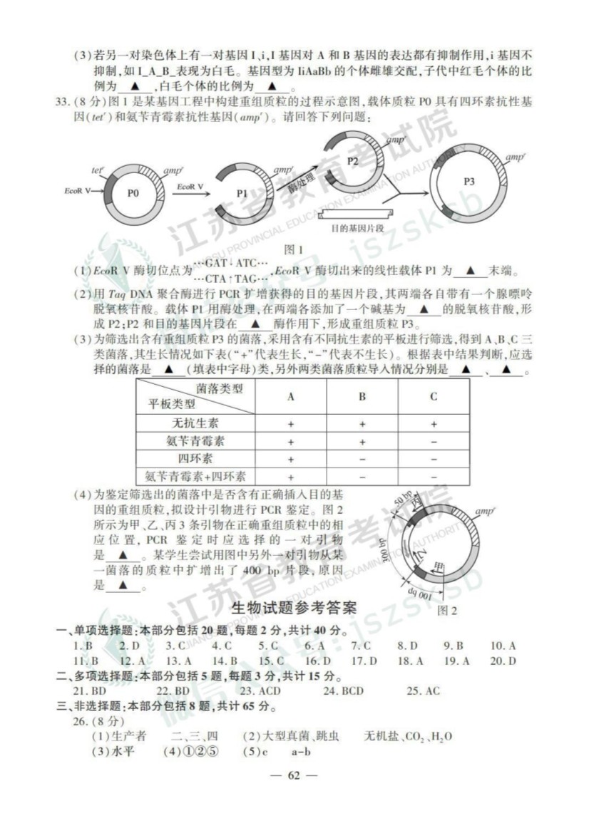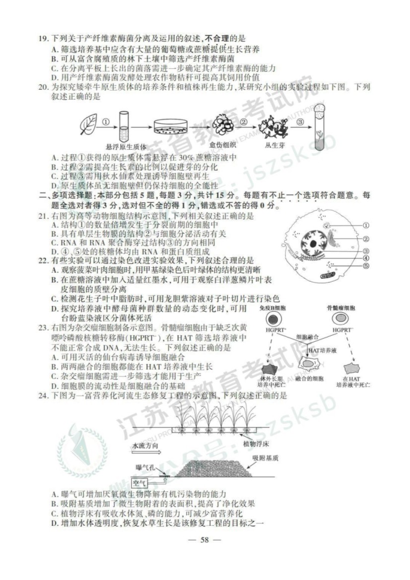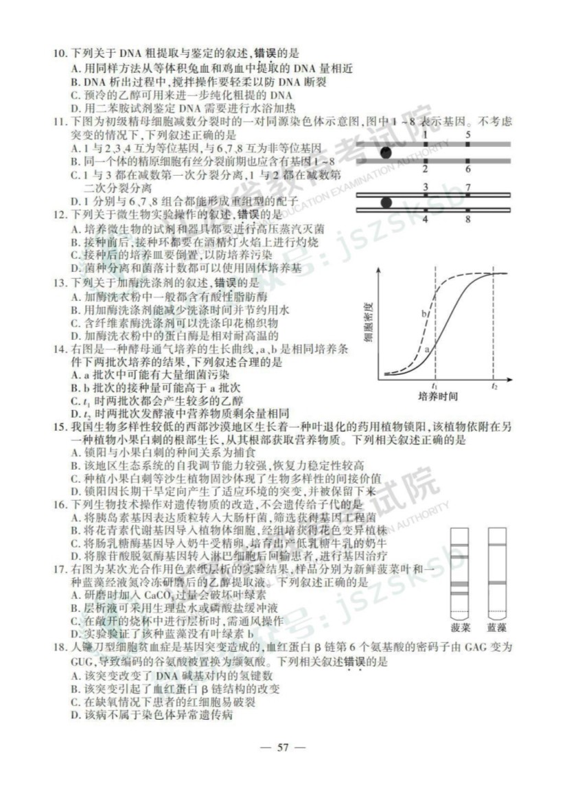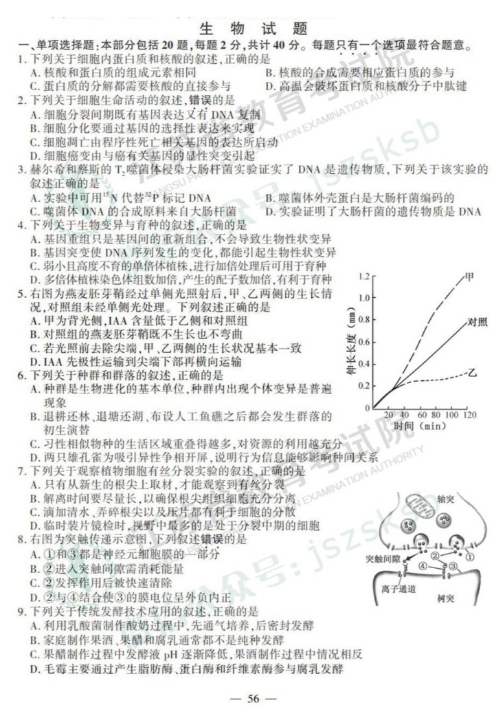 江蘇高考頻道從江蘇教育考試院了解到,2019年江蘇高考生物試卷及答案已公布,江蘇高考生物試卷及答案具體如下: