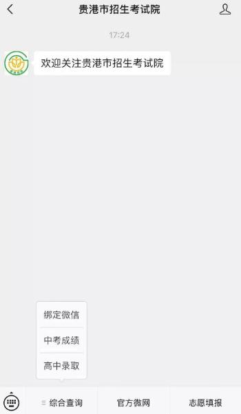 一.“貴港市招生考試院”微信公眾號;