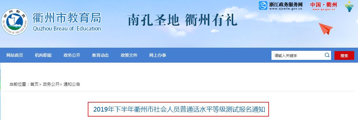 從衢州教育網(wǎng)獲悉,2019年下半年浙江衢州普通話水平測(cè)試報(bào)名通知已公布,報(bào)名時(shí)間為9月2日-9月6日,具體詳情如下: