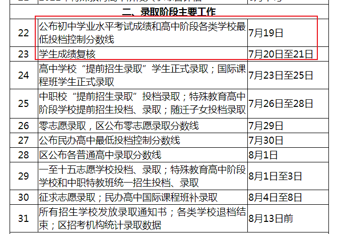 7月19日公布初中學(xué)業(yè)水平考試成績和高中階段各類學(xué)校最低投檔控制分?jǐn)?shù)線