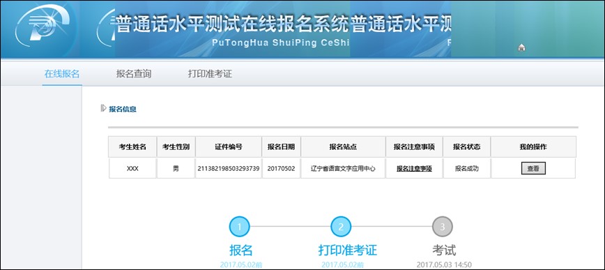 完成現(xiàn)場確認(rèn)的考生請登陸在線報名系統(tǒng)(http://ln.cltt.org/baoming)自行打印準(zhǔn)考證并按準(zhǔn)考證上的時間準(zhǔn)時參加測試。