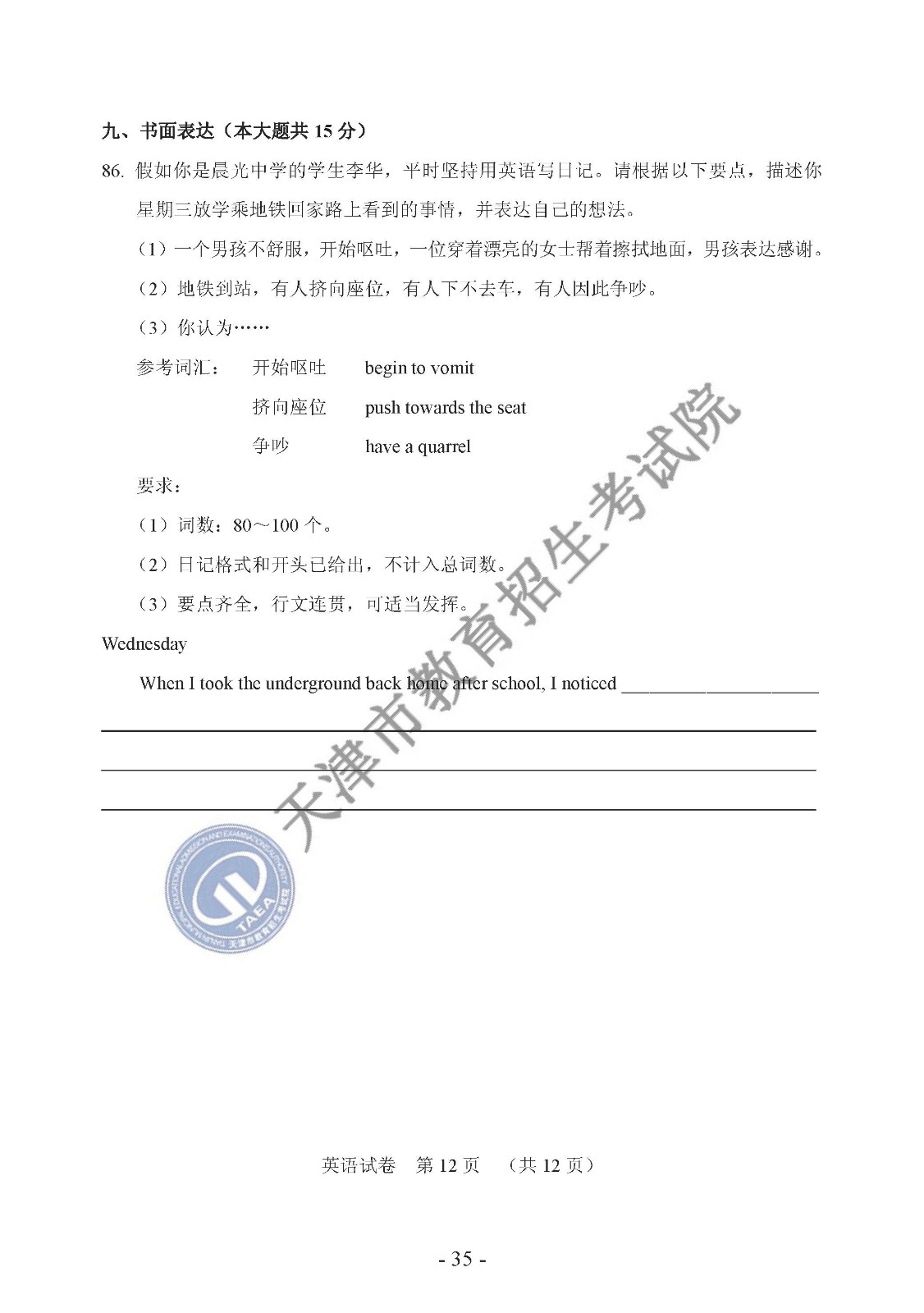 2019年天津市初中畢業(yè)生學(xué)業(yè)考試已于6月15日、16日順利結(jié)束,天津市教育招生考試院現(xiàn)發(fā)布各科目試卷及參考答案,中考頻道已將“2019年天津?qū)氎嬷锌加⒄Z(yǔ)試題”整理如下,供考生們供參考使用,小編預(yù)祝大家取得優(yōu)異的成績(jī)!