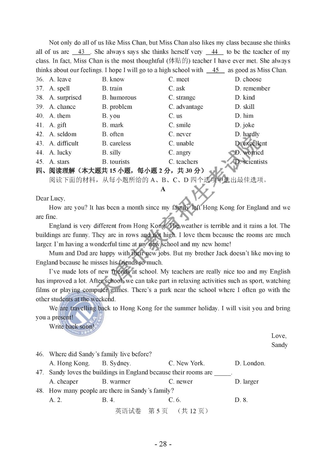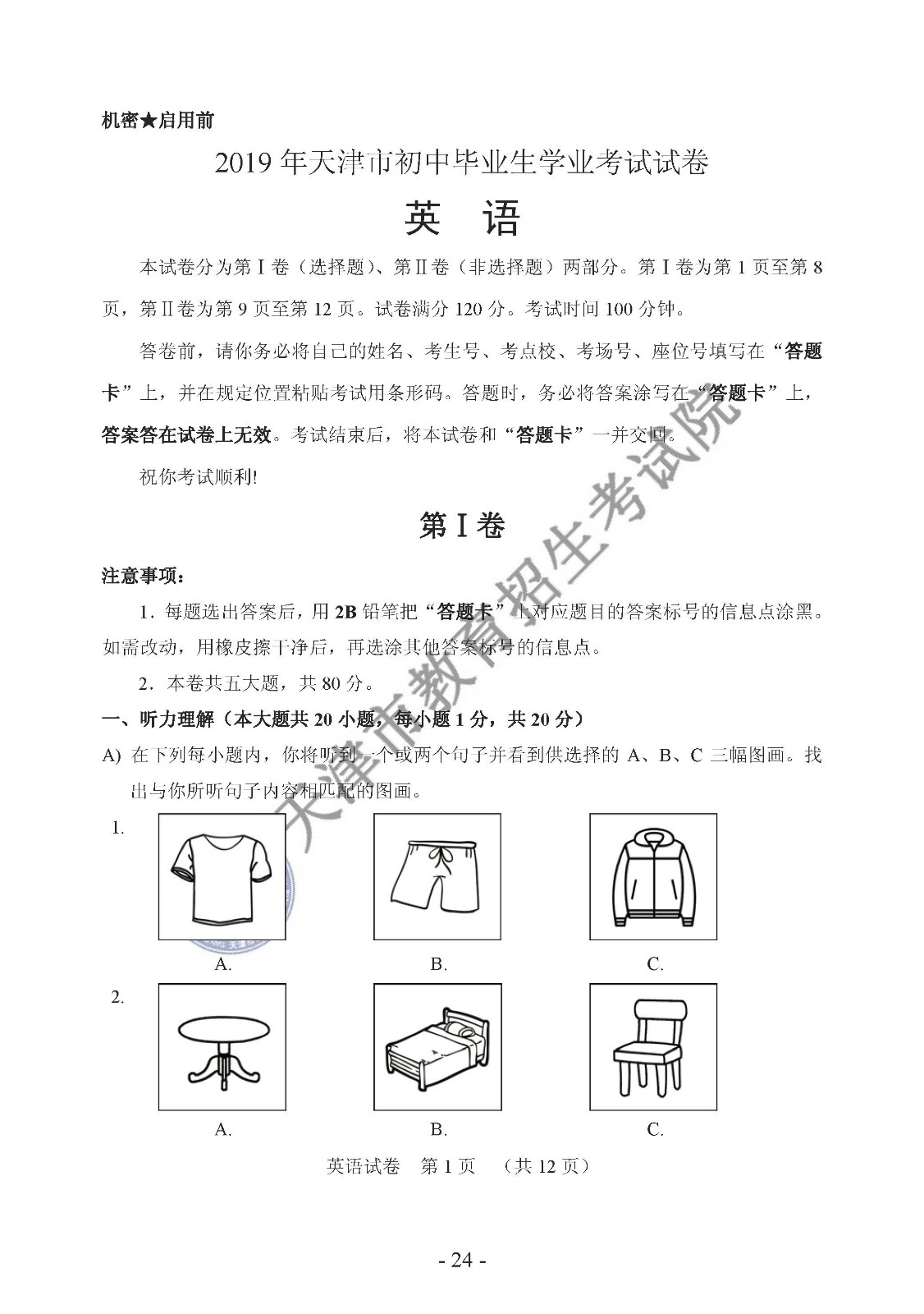 2019年天津市初中畢業(yè)生學(xué)業(yè)考試已于6月15日、16日順利結(jié)束,天津市教育招生考試院現(xiàn)發(fā)布各科目試卷及參考答案,中考頻道已將“2019年天津漢沽中考英語試題”整理如下,供考生們供參考使用,小編預(yù)祝大家取得優(yōu)異的成績!