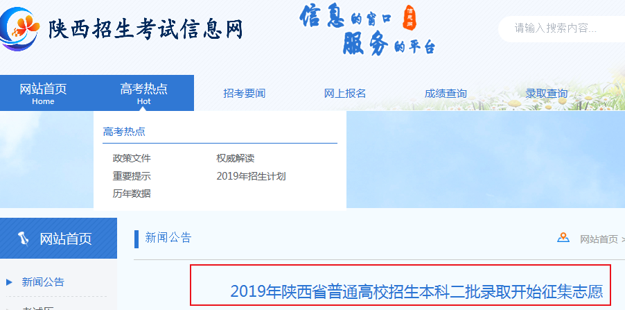 從陜西招生考試信息網(wǎng)獲悉,2019年普通高校招生本科二批錄取開始征集志愿,具體情況如下: