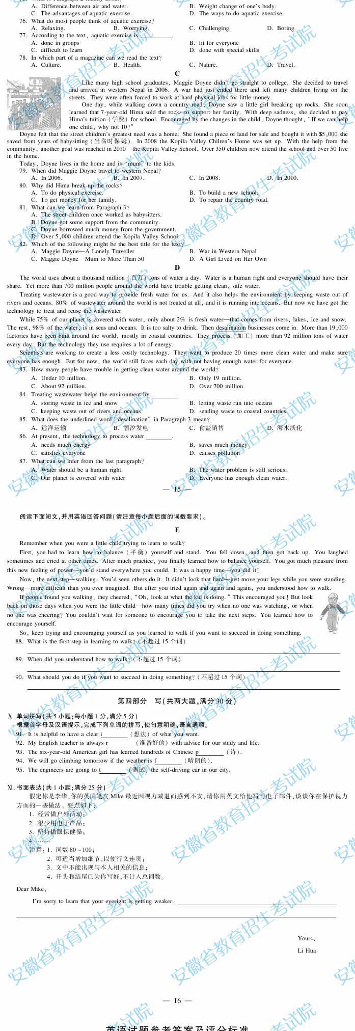 2019年安徽安慶初中畢業(yè)生學(xué)業(yè)考試已于6月16日順利結(jié)束,安徽省教育招生考試院現(xiàn)發(fā)布了各科目2019年安徽安慶省初中學(xué)業(yè)水平考試試題、參考答案及評(píng)分標(biāo)準(zhǔn),中考頻道已將“2019年安徽安慶中考英語試卷”整理如下,供考生們供參考使用,小編預(yù)祝大家取得優(yōu)異的成績!