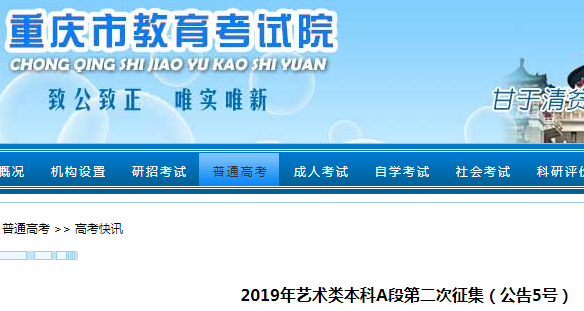 重慶教育考試院發(fā)布“2019年重慶高考藝術(shù)類本科A段第二次征集”供大家參考,希望對考生有幫助!