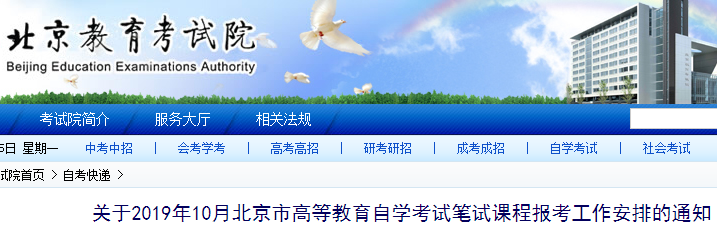 自學(xué)考試頻道從北京教育考試院了解到,關(guān)于2019年10月北京市高等教育自學(xué)考試筆試課程報考工作安排的通知已公布,具體如下: