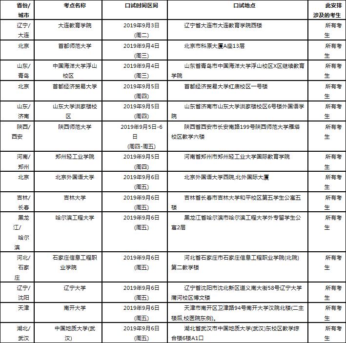 接英國文化教育協(xié)會(huì)通知,報(bào)考2019年9月7日雅思考試的考生口語安排如下,供廣大考生參考。請(qǐng)?jiān)诠P試日期前十天登錄雅思考試報(bào)名網(wǎng)站查詢您的口試安排,打印準(zhǔn)考證并以準(zhǔn)考證信息為準(zhǔn)。