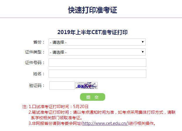 2.輸入省份、證件類型、證件號碼、姓名等信息即可打印準(zhǔn)考證。