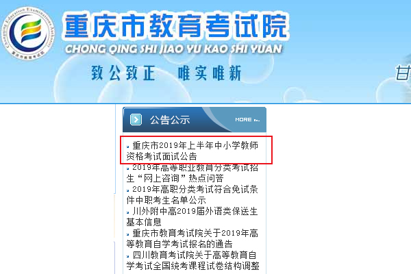 從重慶市教育考試院發(fā)布的《2019年上半年重慶市中小學(xué)教師資格考試面試公告》得知,2019上半年重慶教師資格證面試報名時間及報名入口已公布,4月16日-19日進(jìn)行報名,5月18日至19日舉行面試,具體詳情如下: