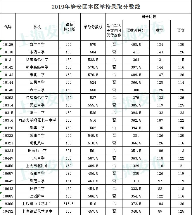 2019年上海靜安區(qū)中考錄取分?jǐn)?shù)線(xiàn)已公布