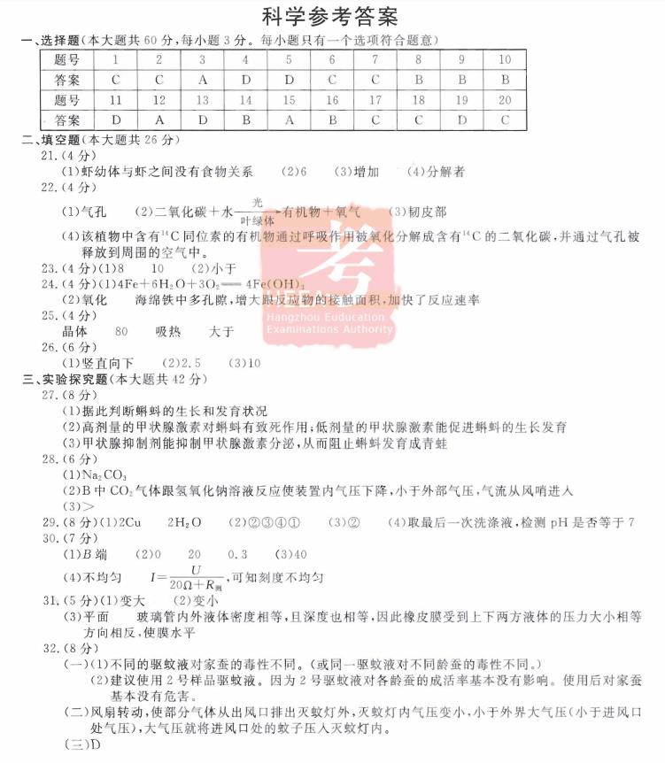 2019年浙江杭州中考物理考試已結(jié)束,中考頻道搜集整理發(fā)布了“2019年浙江杭州中考物理答案”,供考生們參考學(xué)習(xí),小編預(yù)祝大家取得優(yōu)異的成績(jī)!
