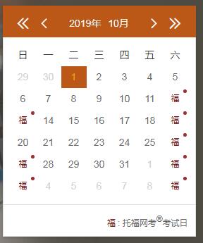 2019年10月托福考試時間安排: